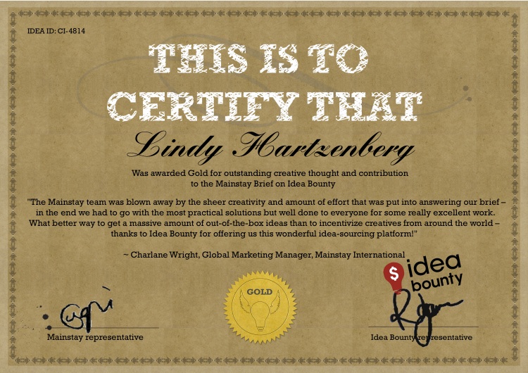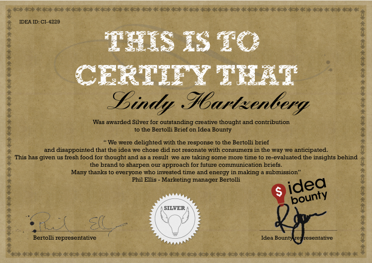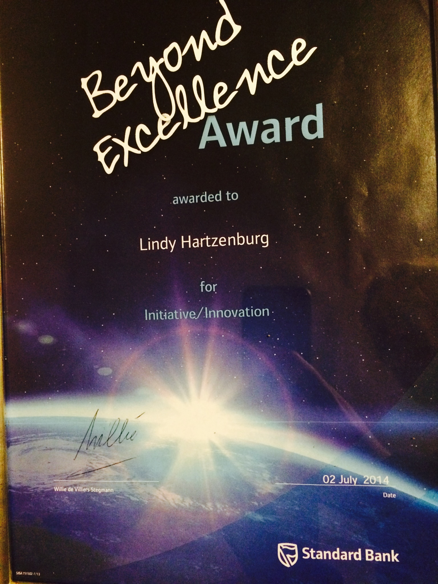 (2009) Certificate of Excellence – Anglo Platinum (2010) Outstanding Achievement Award – Circle Way (201 1) Silver Certificate Advertising Award – Bertolli (201 1) Bronze Certificate Advertising Award – Mainstay (201 1) Silver Certificate Advertising Award – Mainstay (201 1) Gold Certificate Advertising Award – Mainstay (2014) Standard Bank Beyond Excellence Award - Innovation (2014) Team Award - Communication